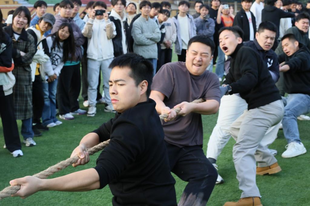 压轴登场的拔河比赛,将全场气氛推向最高潮。哨声一响,双方队员紧握长绳,力贯脚跟,为班级而战,为荣誉而战。红线在中线附近来回移动,胜负仅在毫厘之间。场边口号声、呐喊声、助威声震耳欲聋,各班队员更是将顽强拼搏、坚持到底的体育精神展现得淋漓尽致。
